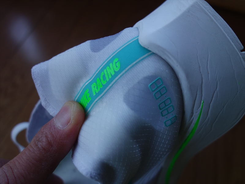 まだトータルで30kほどしか走っていないので、“今のところ平気”なのですが、正直不安な点ではある。ワタシの貧脚ではレース後半の疲労の溜まった足では、この柔らかいヒールカップと厚底で左右へのグラつきがどう影響するのか、、、心配。
