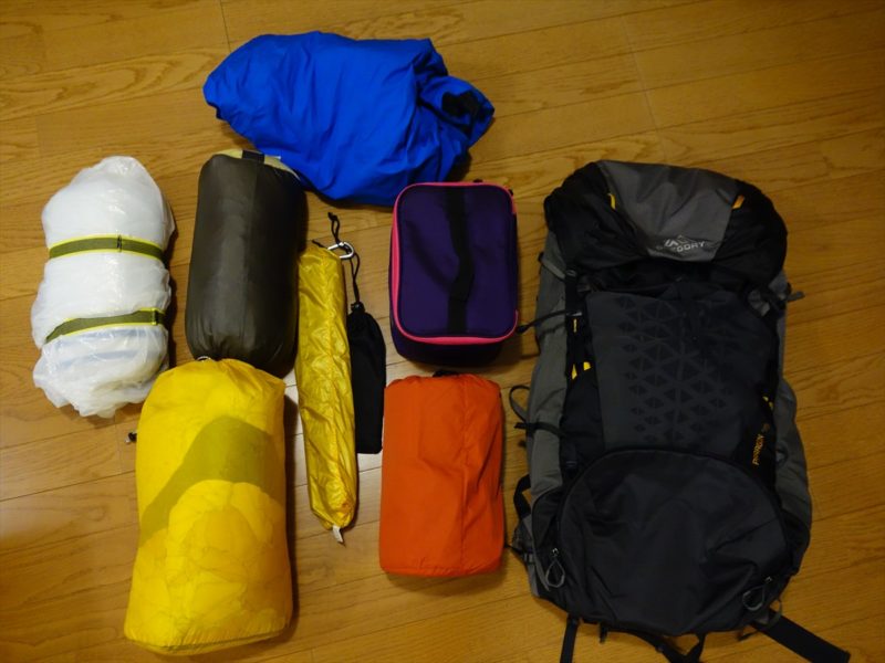 特になにも考えずに、秋ころに持ち出す感じのテント装備(嵩張る奴等だけ)を適当に入れてみる。